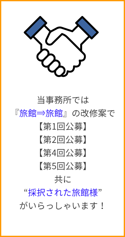 弊社は<旅館、宿、温泉旅館、温泉宿、宿泊施設>のリノベーション設計、改修設計に“専門特化”した建築設計事務所です。